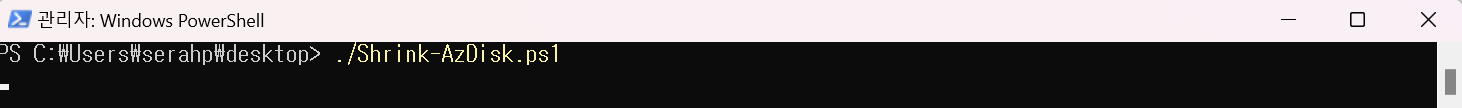 3. Powershell에서 해당 명령어를 실행하여 파티션의 크기를 줄인다.