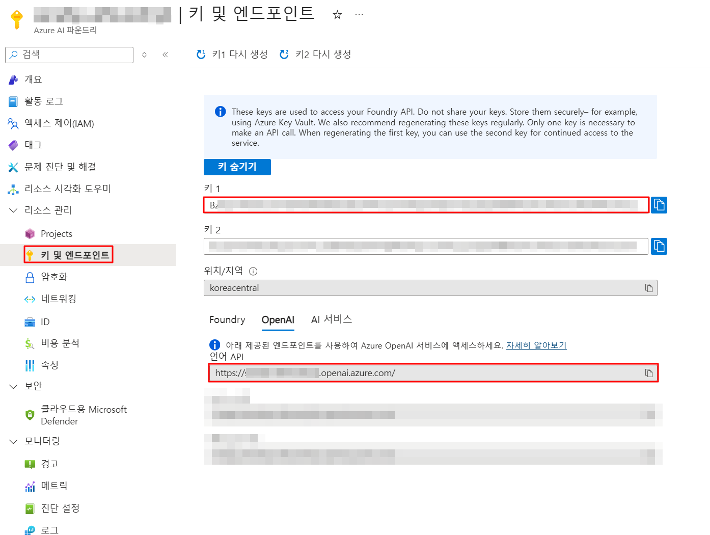 - 리전 : Korea Central