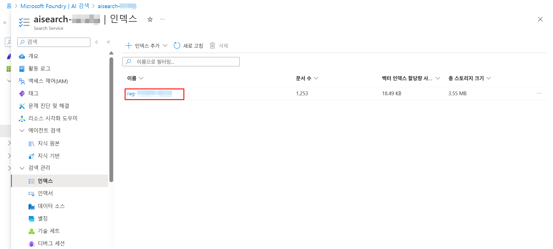 AZURE_SEARCH_INDEX="AI Search 인덱스명" : AI Search의 인덱스명 입력