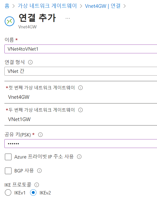 - 이름: VNet1toVNet4