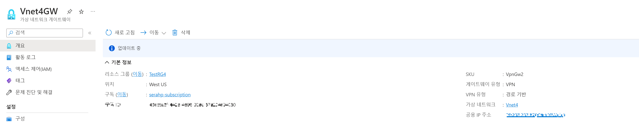 - 공용 IP 주소 이름: VNet4GWpip