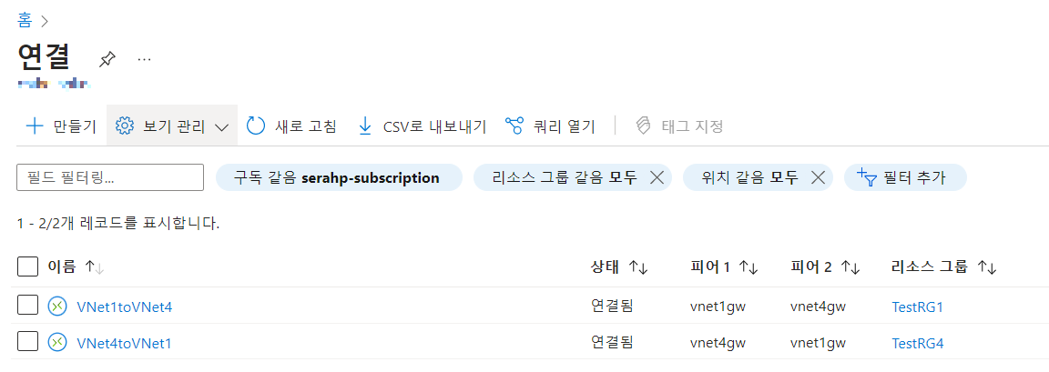 1. 두 개의 가상 네트워크 게이트웨이 모두 가져오기