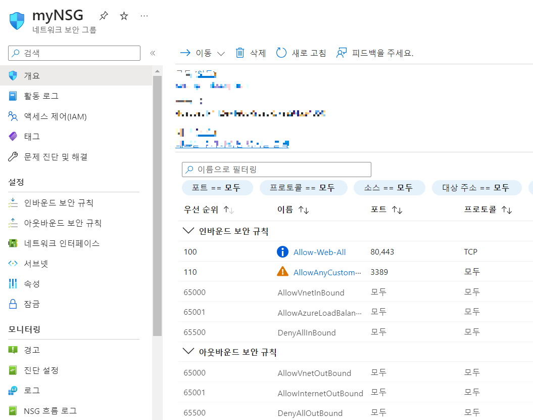 [실습1. 네트워크 보안 그룹을 통해 네트워크 트래픽 필터링 (with Azure Portal)]