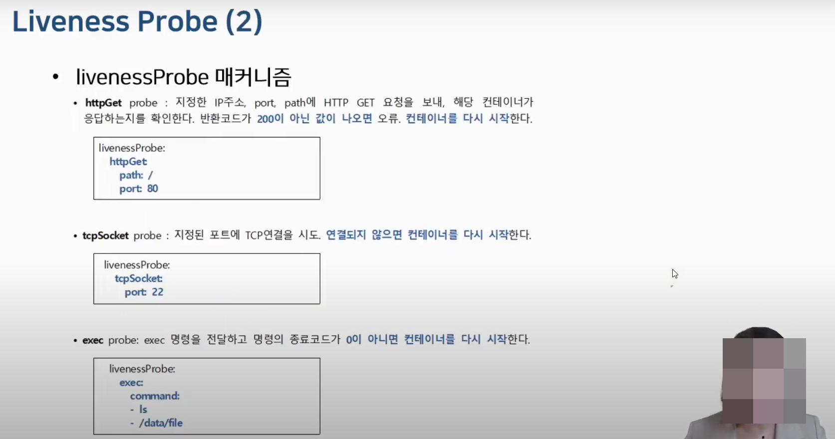 - 2. tcpSocket : 지정한 포트에 TCP 연결을 시도하고, 연결되지 않으면 컨테이너를 다시 시작