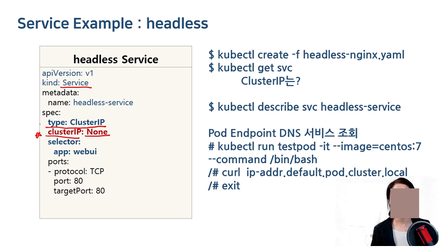 - 클러스터 내에서 Pod에 대한 DNS 이름을 제공하지만, ClusterIP를 할당하지 않는 서비스